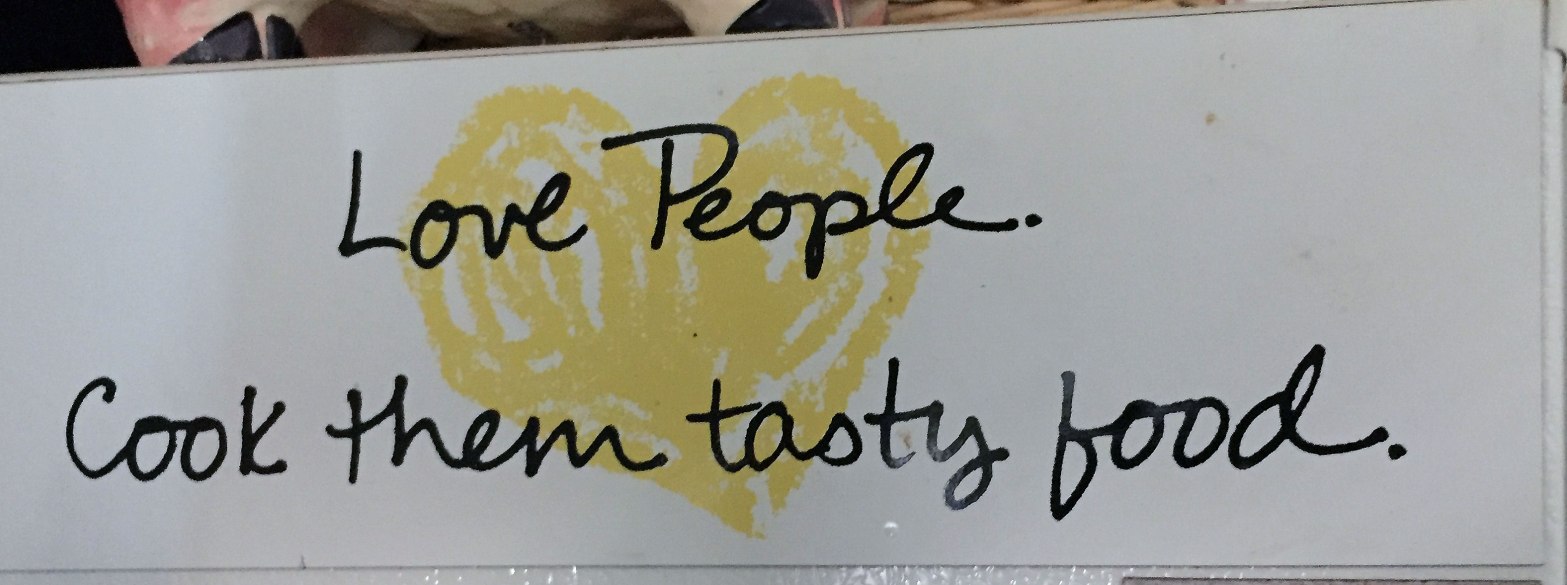 One of our favorite pieces of kitchenalia isn’t a gadget, or a cute looking creamer, or even the proud and honored whisk. It’s a refrigerator magnet with a very special message.